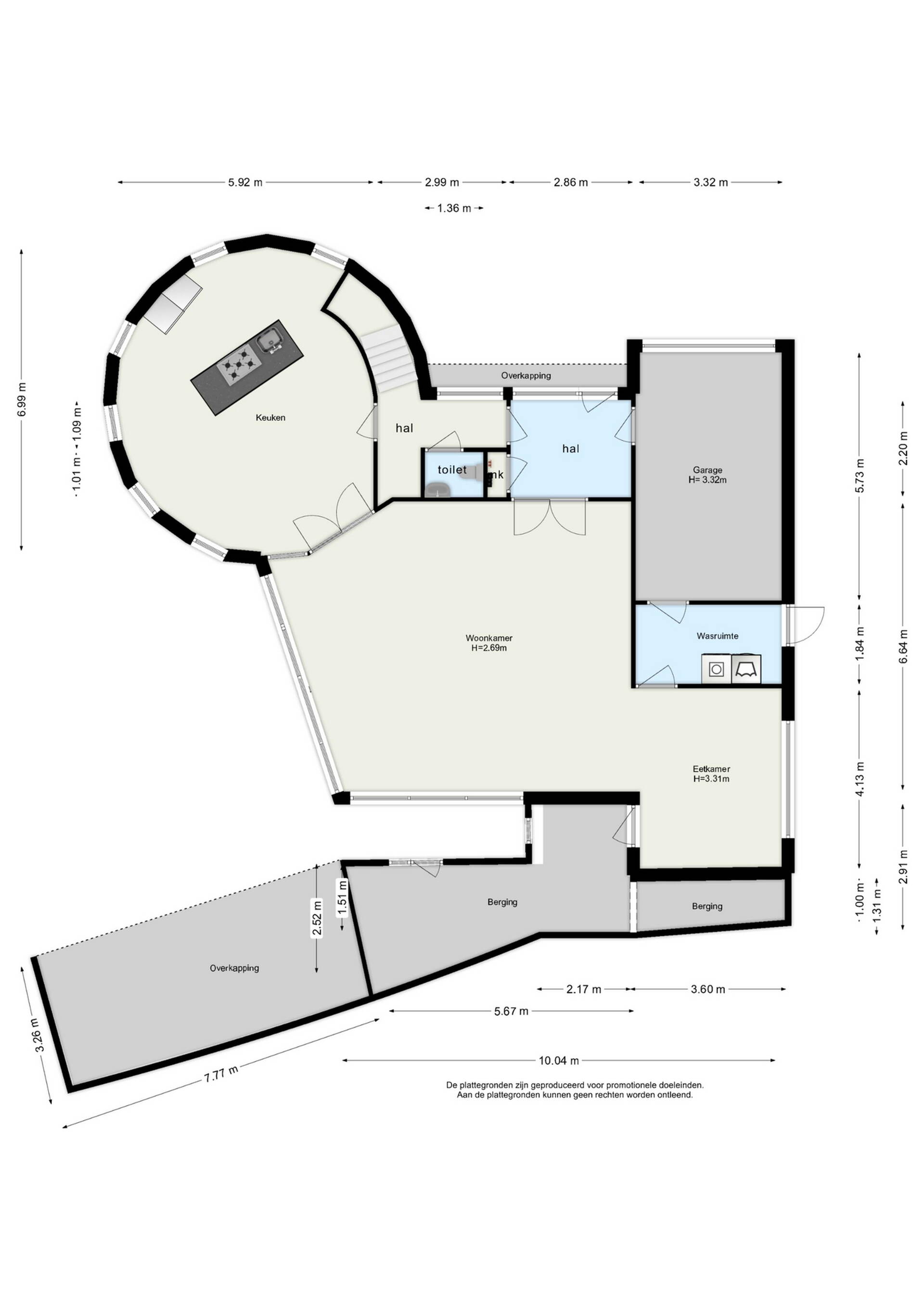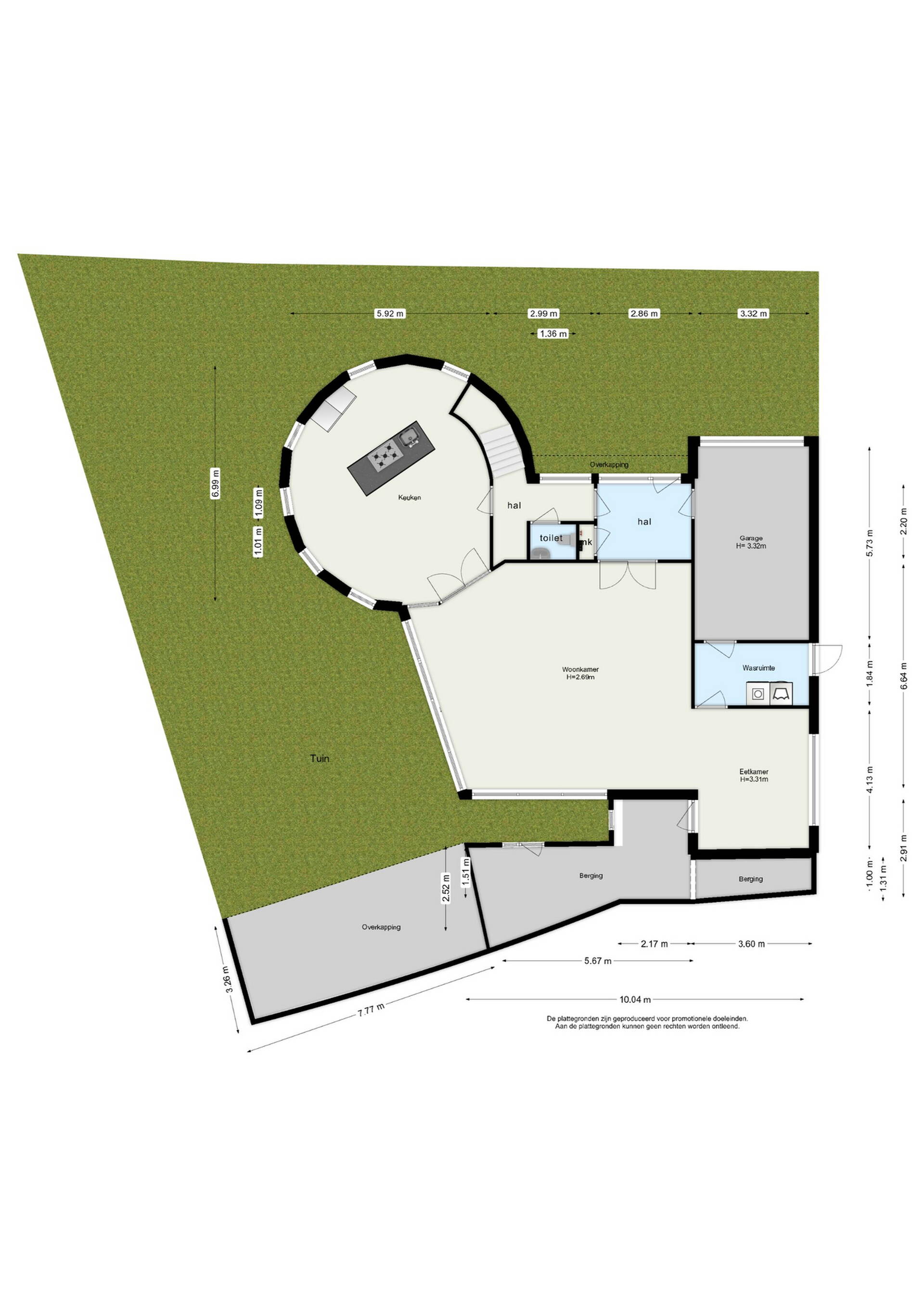 Bij binnenkomst via de entree komt u in de hal, die toegang biedt tot de garage, de moderne toiletruimte en de meterkast.