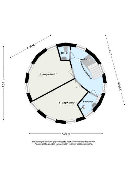 De derde verdieping bestaat uit een open ruimte met de verlichte koepel, die tal van mogelijkheden biedt. Een waanzinnige werkplek of een hele bijzondere slaapkamer! Hier kunt u genieten van het adembenemende 360 graden uitzicht.