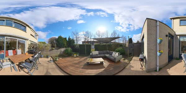 De ruime, tuingerichte woonkamer is een fijne plek om te ontspannen, met een grote schuifpui naar de tuin. De aangebouwde tuinkamer biedt extra leefruimte en heeft een aparte deur naar de prachtig aangelegde achtertuin. Voor extra comfort zijn er screens aan de achterzijde en een zonnescherm.