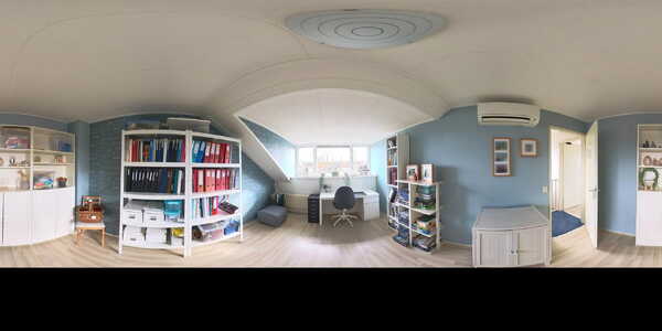 - De zolderverdieping is voorzien van rolluiken en airco's