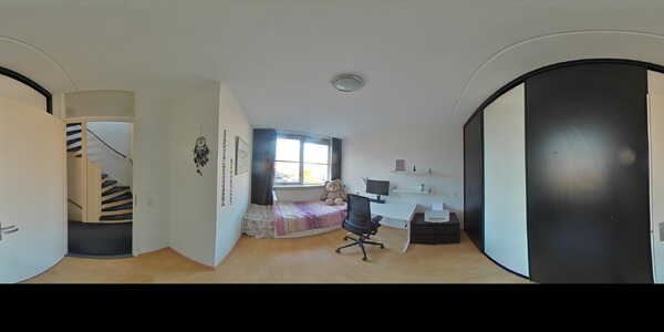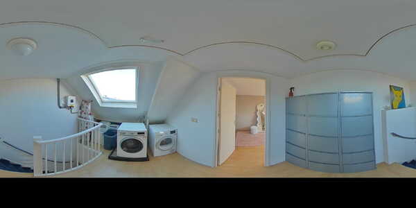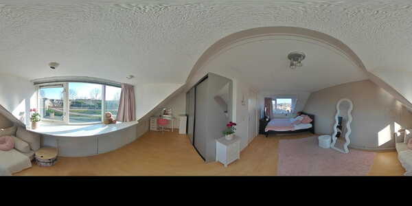 Op de tweede verdieping komen we aan op de overloop waar zich de aansluitingen bevinden voor de wasmachine en droger. Daarnaast treffen we de CV-ketel en de omvormer van de 7 zonnepanelen. Tevens heb je vanaf de overloop toegang tot de vliering met een vloeroppervlak van ca. 15 m2. Een mooie plek voor de kerstboom. Dan lopen we de derde slaapkamer in, die is met ruim 18 m2 groot en daarin is de ruimte onder de schuine kap vanaf 1,50 meter niet meegerekend. Met de twee dakkapellen is dit een hele fijne inspirerend lichte kamer met een grote inbouwkast, plek voor een tweepersoonsbed, kaptafel en/of bureautje. Die ene kamer waar ieder kind van droomt!