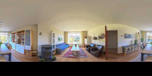 Bij binnenkomst biedt de entree toegang tot de hal, meterkast, een praktische trapkast en het toilet. De doorzonwoonkamer heeft een sfeervolle erker aan de voorzijde, waardoor er veel natuurlijk licht naar binnen valt. Het gestuukte plafond en de sierpleisterwanden geven de ruimte een verzorgde uitstraling. In de koude maanden zorgt de houtkachel voor extra sfeer en warmte.