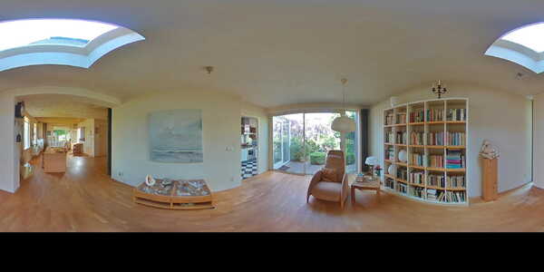 Via de voortuin stap je achter de voordeur de hal binnen en loopt gelijk door de woonkamer in. Dat is een enorme ruimte van 46 m2 met ramen aan de voor-, zij- en achterkant. Heerlijk, dat zorgt voor veel licht binnen. In de uitbouw aan de achterzijde is zelfs een lichtkoepel geplaatst voor optimaal licht.