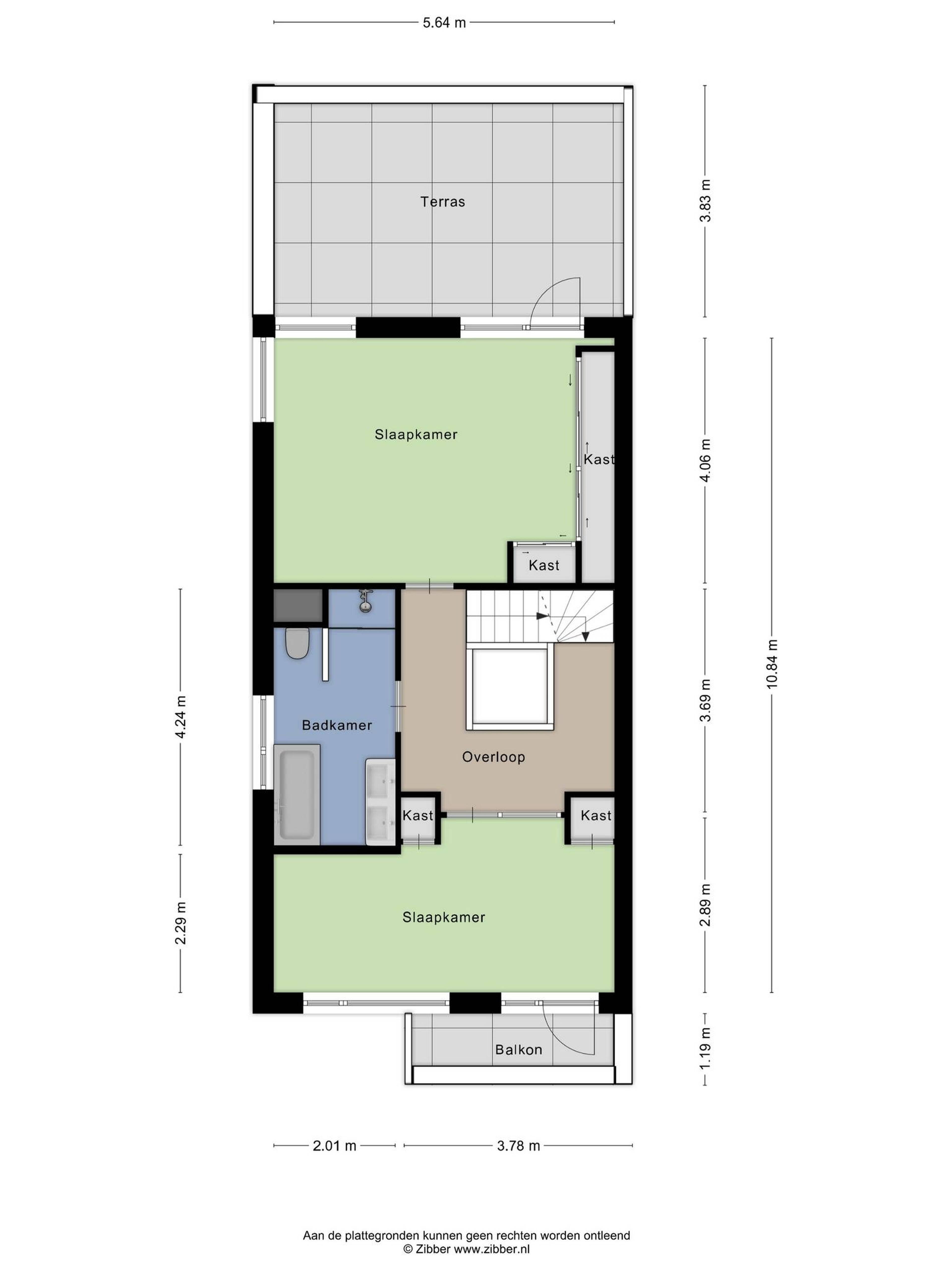 Dakterras (ca. 22 m2) is gelegen op het noorden.