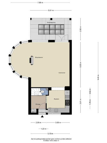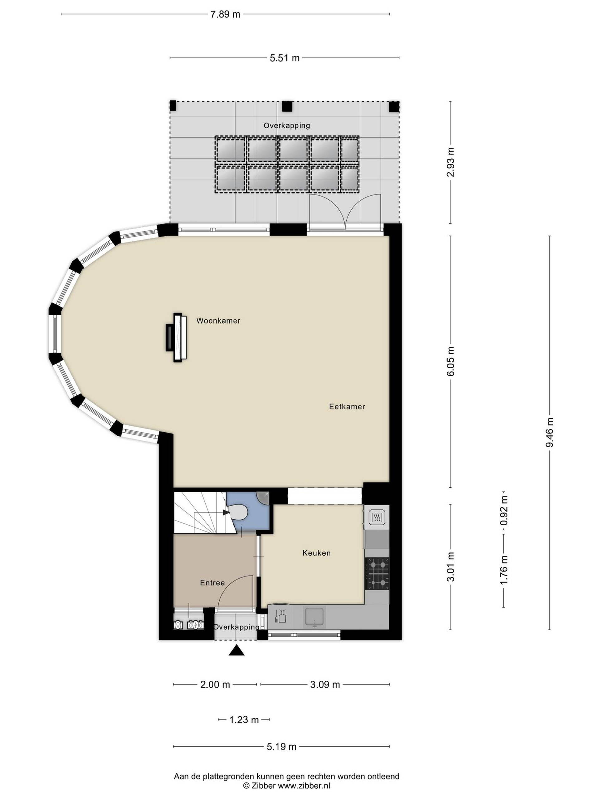 Overkapping (ca. 16 m2) met een koepelraam en verlichting.