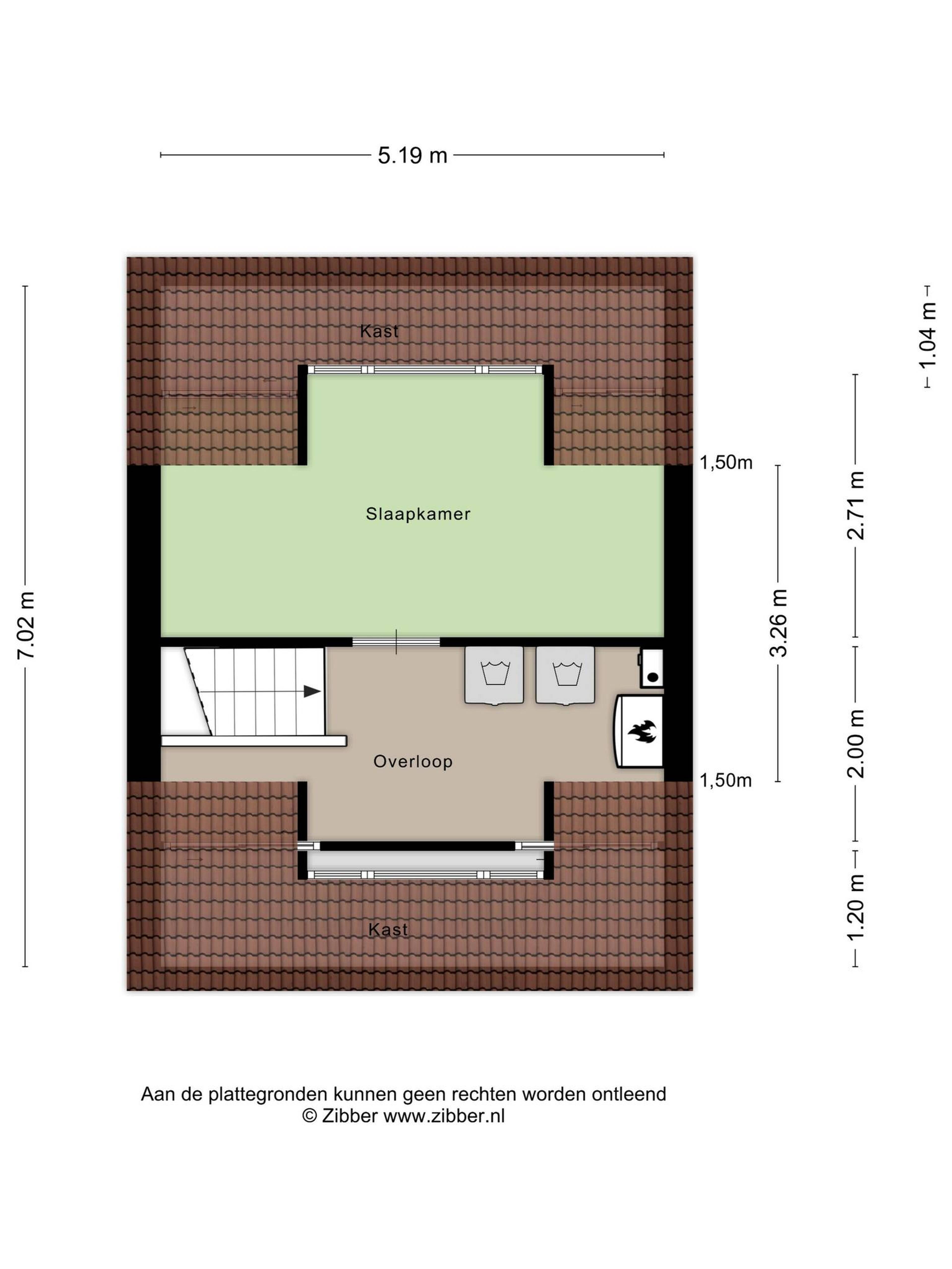Slaapkamer 2 (ca. 14 m2) is gelegen aan de achterzijde van de woning en beschikt over een houten dakkapel, laminaatvloer en bergruimte achter het knieschot.