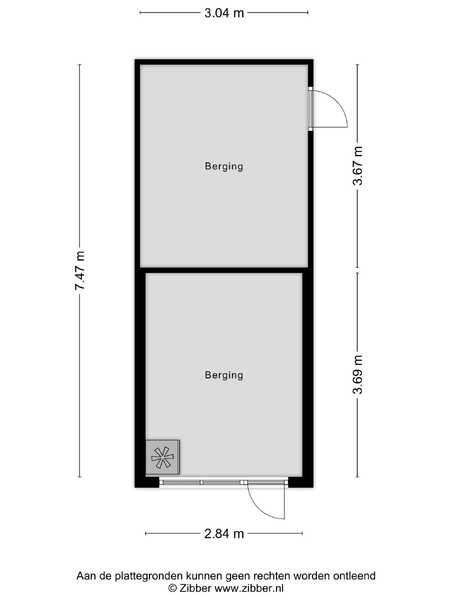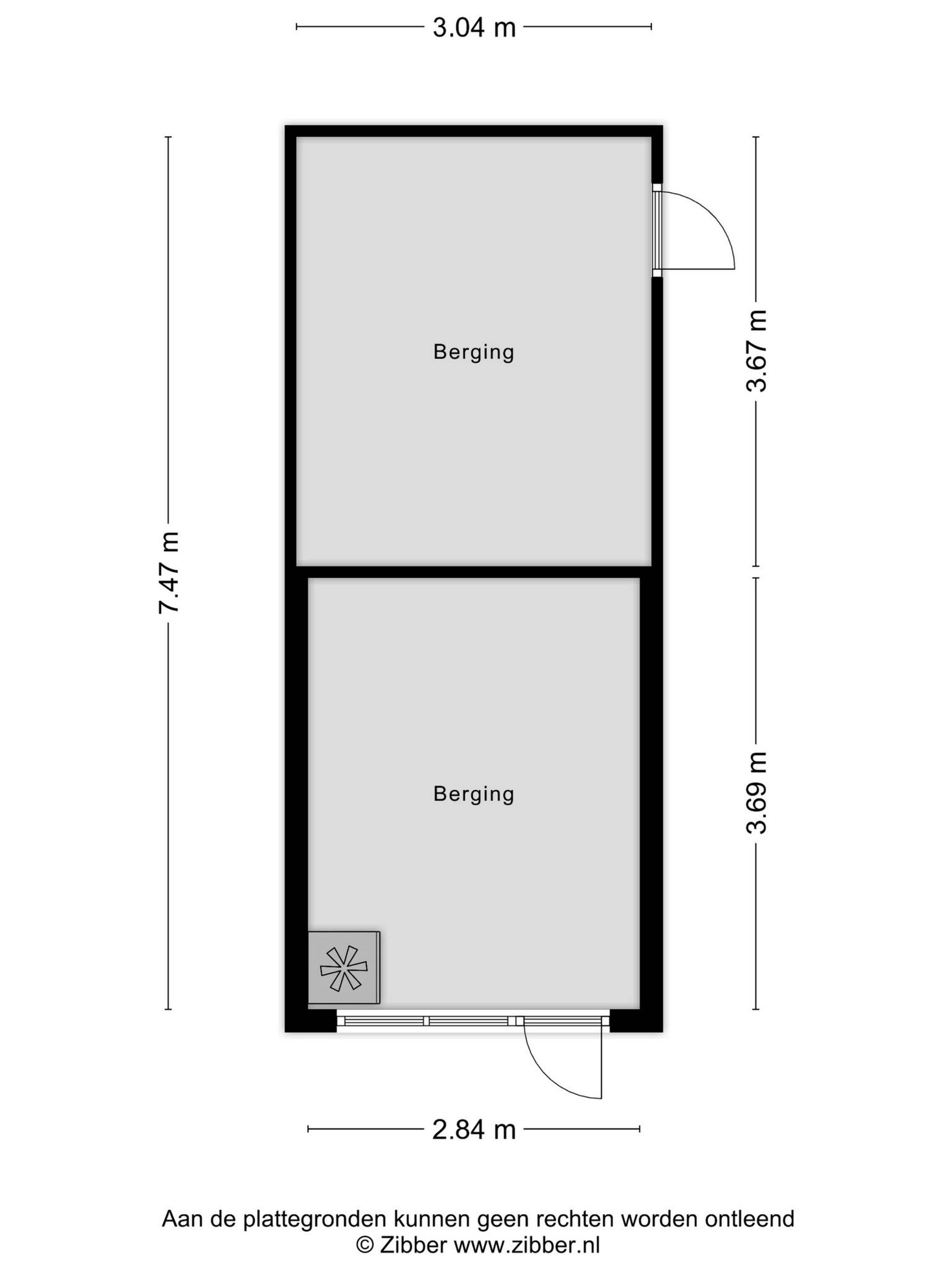 Berging (ca. 11 m2) voorzien van elektra en stopcontact.