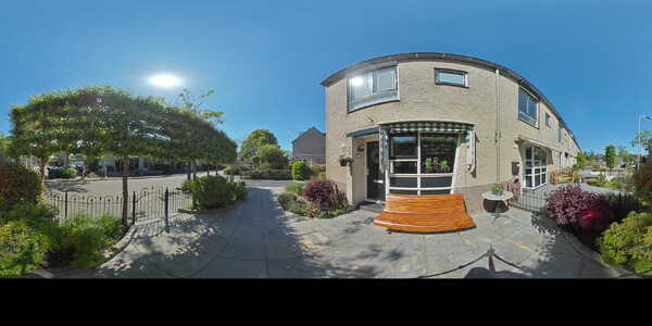 - De voor- en zijgevel op de begane grond beschikken over handmatig bedienbare markiezen;