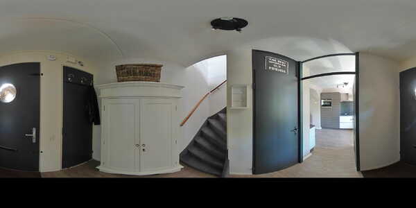 Ruime overloop met toegang tot alle vertrekken en trap naar de 2e verdieping.