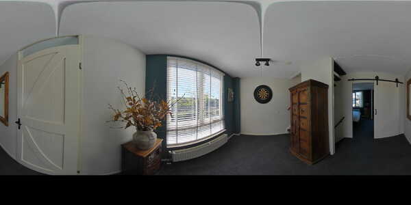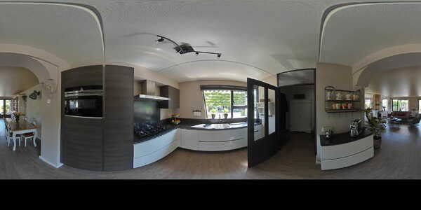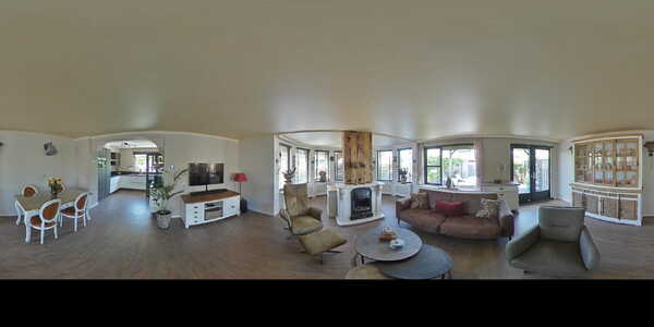 Sfeervolle uitgebouwde woonkamer (ca. 40 m2) voorzien van een duurzame PVC vloer met vloerverwarming, glad gestucte wanden en spanplafond systeem. De kamer is verder afgewerkt met radiatorombouw kasten. De uitbouw aan de zijkant vormt een heerlijke extra leefruimte en wordt gescheiden van de woonkamer door een gezellige dichte kachel met schouw. Middels openslaande deuren heeft u toegang tot de diepe achtertuin. Verder is de woning uitgerust met handmatig bedienbare markiezen aan de serre en voorgevel van de begane grond.