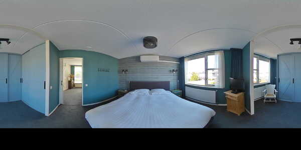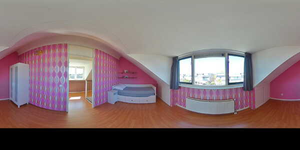 Slaapkamer 1 (ca. 19 m2) is gelegen aan de achterzijde van de woning en was voorheen 2 slaapkamers. Deze ruime slaapkamer is voorzien van airconditioning die de ruimte verwarmt en koelt. Verder is deze kamer voorzien van een 5-deuren schuifkastenwand en tapijtvloer.