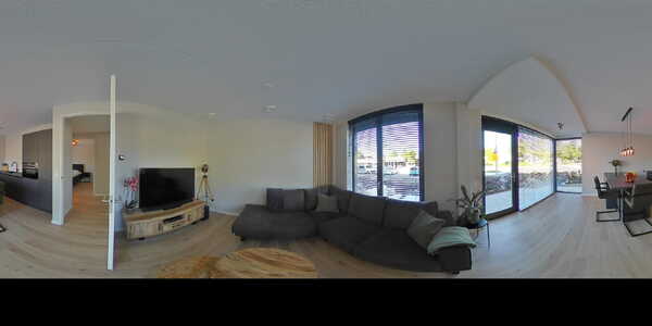 De woonkamer is ca. 26 m2 groot en heel erg goed ingedeeld. Door de grote raampartijen voelt de ruimte aanzienlijk groter. Aan de linkerzijde treffen we een gezellige zithoek waar je lekker neer kunt ploffen met een boek of even lekker wat TV kunt kijken. Aan de rechterzijde treffen we een prachtige luxe open keuken met bar. Stijlvol uitgevoerd in antraciet en voorzien van diverse inbouwapparatuur zoals de koelkast, vriezer, combi-oven, de vaatwasmachine en Bora kookplaat met geïntegreerde afzuiginstallatie. Het natuurstenen keukenblad en de Quooker maken de keuken helemaal af. Op het blad is voldoende plek voor je koffiemachine en bijvoorbeeld de keukenmachine of blender. In de laden en kastjes kun je al je keukenspullen kwijt en ook aan de kant van de woonkamer zijn onder het blad kastjes ingebouwd waar je nog diverse spulletjes kwijt kunt, dat scheelt weer een kast in de woonkamer.