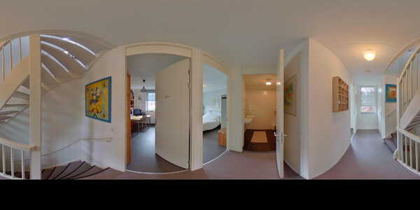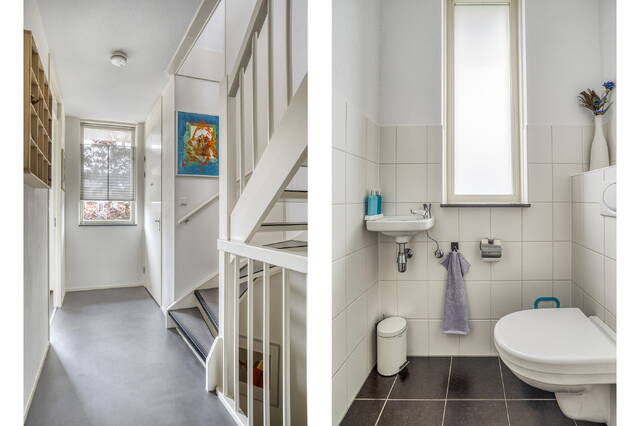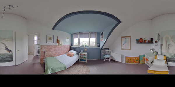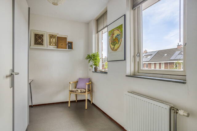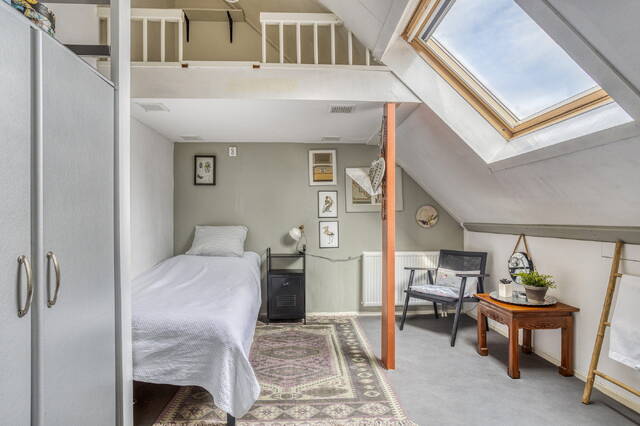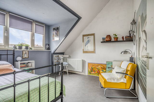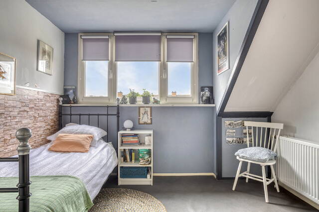 Ruime voorzolder met opstelplaatsen voor wasmachine, droger, cv-installatie, mechanische ventilatie en de omvormer voor de zonnepanelen. Er zijn twee volwaardige slaapkamers, één met dakkapel aan de achterzijde en één met dakraam aan de voorzijde. Beide kamers bieden volop licht en bergruimte achter knieschotten.