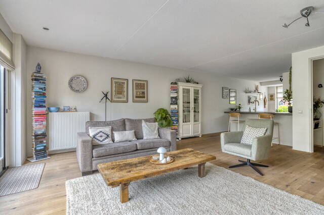De woning beschikt over een royale woonkamer met uitbouw en tuinkamer, een moderne keuken met inbouwapparatuur (waaronder een Quooker), vijf slaapkamers, een verzorgde achtertuin op het zuiden, en een eigen oprit. Dankzij de 12 zonnepanelen en goede isolatie is het huis bovendien energiezuinig. Alles is strak afgewerkt en tot in de puntjes verzorgd.