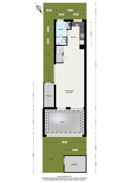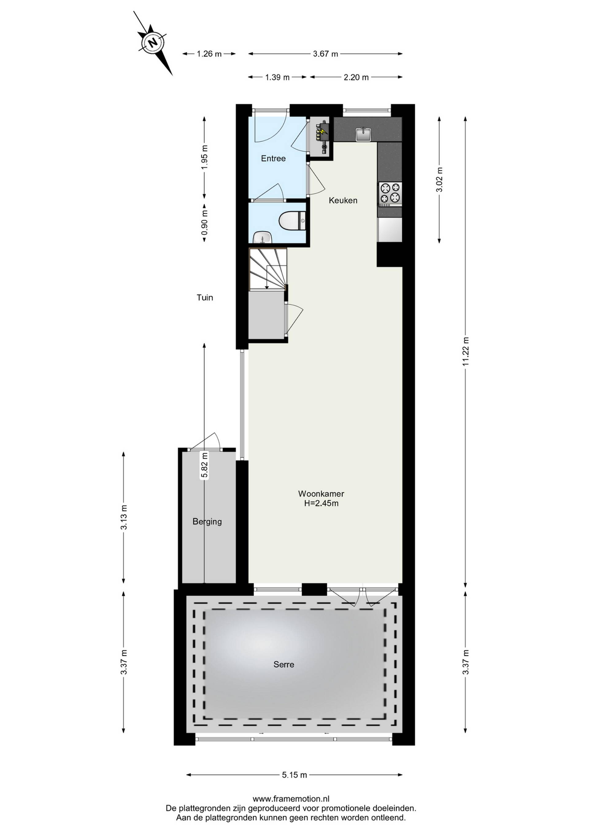 Bij binnenkomst in de hal met garderobe en toilet voelt u meteen de fijne sfeer van deze woning. De lichte PVC-vloer leidt u naar de open keuken en woonkamer. De moderne keuken (ca. 7 m²) in licht grijs met donkergrijs werkblad is volledig uitgerust met een combi-oven, inductiekookplaat, vaatwasser en koelkast. De royale woonkamer (ca. 29 m²) heeft grote ramen en openslaande deuren naar de serre, die zich over de gehele breedte van de tuin bevindt. De aluminium serre (ca. 17 m²) is voorzien van inbouwspots en openschuifdeuren, waardoor u het hele jaar door geniet van het buitengevoel. De tuin ligt op het oosten, met sierbestrating, houten schuttingen, een houten berging en een poort naar het achterpad. Aan de zijkant vindt u een separate bergruimte, ideaal voor bijvoorbeeld fietsen.