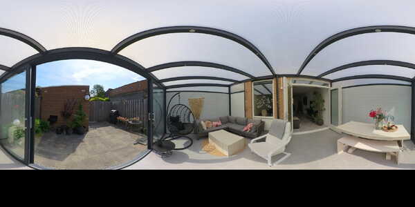 - Ruime serre met openschuifdeuren, voorzien van inbouwspots en vooral veel natuurlijk licht
