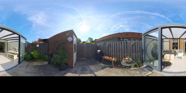 - Ruime hoekwoning met zijtuin en serre over de volledige breedte van de tuin, ideaal voor genieten van buiten en binnen