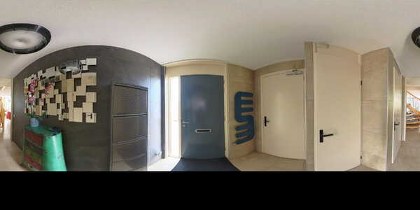 De entree verwelkomt u in een ruime hal met een luxe, volledig betegelde toiletruimte uitgevoerd in natuurlijke tinten, een hangend toilet en een stijlvol fonteintje. Vanuit de hal krijgt u toegang tot de inpandige berging, die uitgerust is met aansluitingen voor wasmachine en droger, en een Aquacell waterontharder (ter overname).