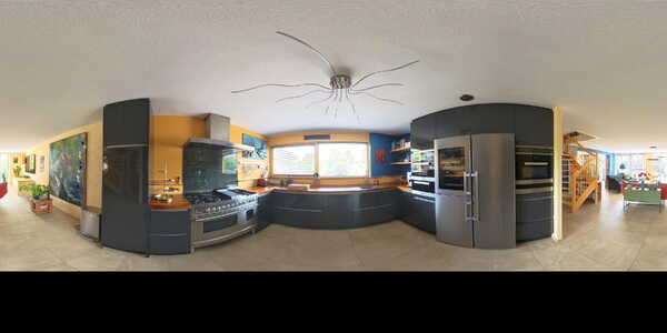 De open keuken (ca. 14 m²) aan de voorzijde heeft een moderne en luxe uitstraling met een U-opstelling en alle denkbare Miele apparatuur, waaronder een 7-pits Boretti gasfornuis met twee ovens, een magnetron, stoomoven, twee warmhoudlades, vaatwasser, en een praktische Quooker Cube flex kraan. Twee stijlvolle apothekerskasten en een Lemans carrouselkast zorgen voor optimale opbergmogelijkheden. De led-verlichting, die via een app kan worden bediend en in diverse kleuren kan worden ingesteld, maken de keuken compleet en sfeervol.