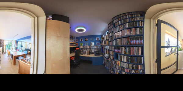 Via een stijlvolle zwart glazen paneeldeur komt u in de schitterende woonkamer (ca. 60 m²). Deze ruime, L-vormige woonkamer is bijzonder licht dankzij de grote raampartijen aan de achterzijde en is voorzien van een lichte plavuizenvloer. Vanuit de woonkamer heeft u toegang tot de werkkamer/kantoor (ca. 7 m²). De schuifpui met hordeur biedt directe toegang tot de tuin en zorgt voor een open verbinding met de tuin.