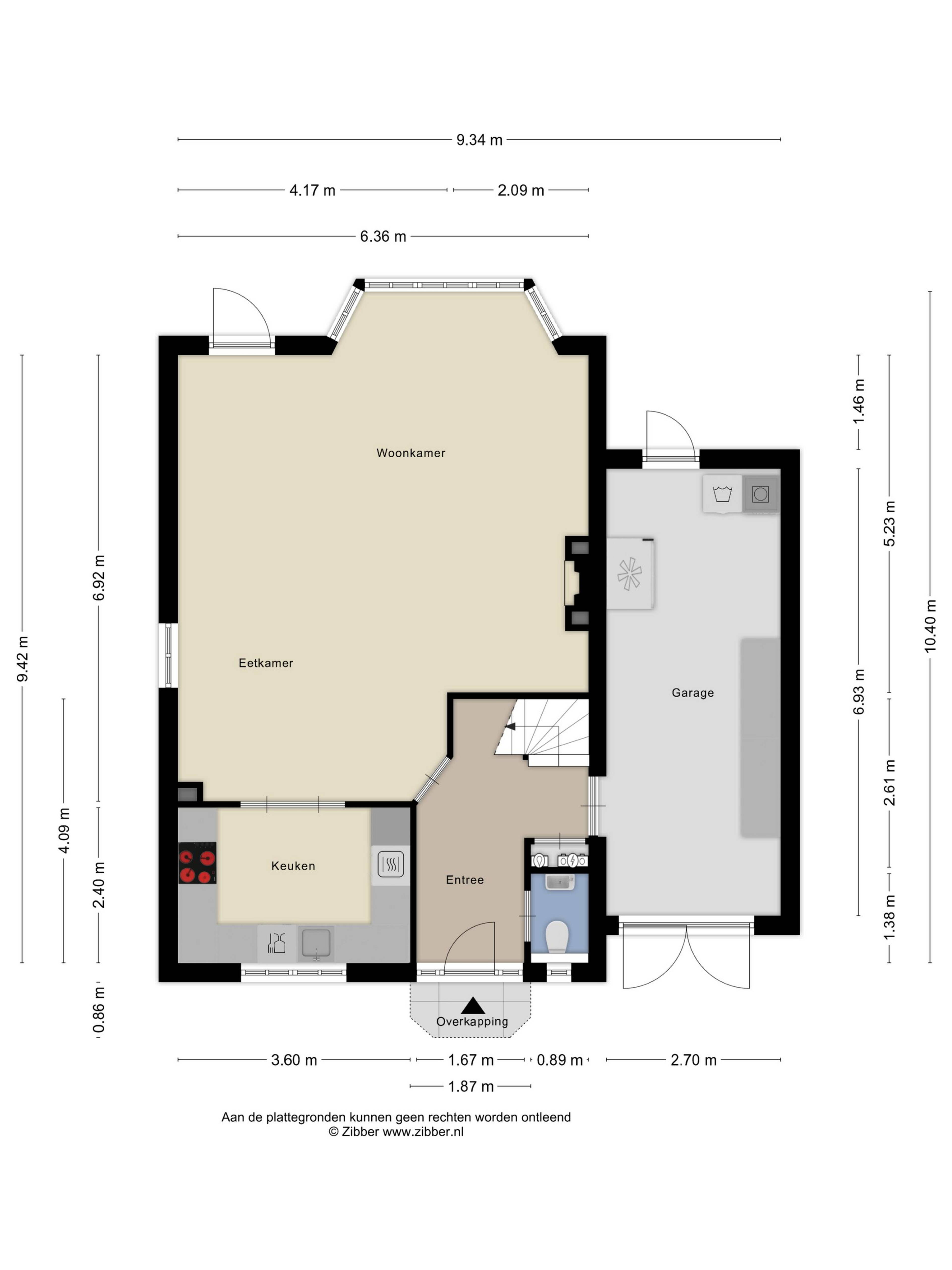 Entree, ruime hal, meterkast, trap naar de 1e verdieping, toegang tot de garage, fraai afgewerkte toiletruimte voorzien van een hangend toilet en fonteintje. De toiletruimte is geheel betegeld in een beige/grijs kleurstelling.