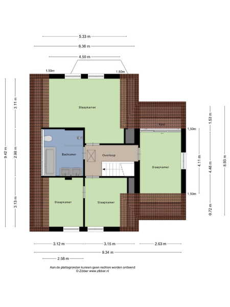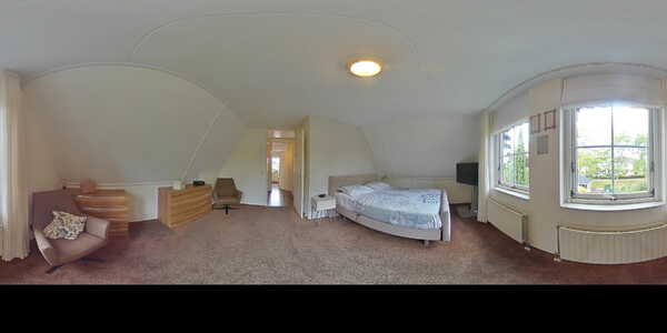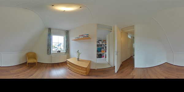 Slaapkamer 3 (ca. 14 m2) is gelegen aan de voorzijde van de woning en beschikt over twee handmatig bedienbare markies, hor en parketvloer. Deze slaapkamer beschikt over een naastgelegen inloopkast afgewerkt met vinyl vloer en handmatig bedienbare markies.