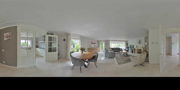 Sfeervolle lichte tuingerichte woonkamer (ca. 44 m2) voorzien van een lichte natuurstenen vloer met vloerverwarming. Deze royale woonkamer is verder voorzien van een sfeervolle gashaard met natuurstenen schouw, sierlijsten aan het plafond en een fraaie erker aan de achterzijde, compleet met markiezen. Door de grote raampartij biedt het woongedeelte een aangename natuurlijke lichtinval. Middels een loopdeur heeft u toegang tot de zonnige achtertuin. Via openslaande deuren bereikt u de compleet ingerichte keuken.