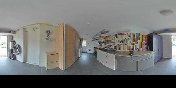 De inpandige garage (ca. 19 m2) is verwarmd en geïsoleerd en beschikt over vloertegels, de wasmachine- en drogeraansluiting, centraal stofzuigsysteem installatie en openslaande garagedeuren. Via een loopdeur heeft u toegang tot de achtertuin.