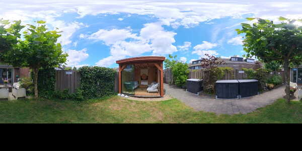 - Gezellige tuin met overkapping en diverse sierbeplanting