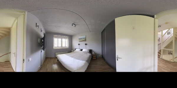 De slaapkamer (ca. 11 m²) op deze verdieping bereikt men via een stoere houten schuifdeur en is voorzien van een Velux dakraam en dakkapel, waardoor de ruimte licht en functioneel is. Bergruimte achter de knieschotten maakt optimaal gebruik van de aanwezige ruimte.