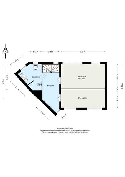 De overloop biedt toegang tot twee slaapkamers en de badkamer.