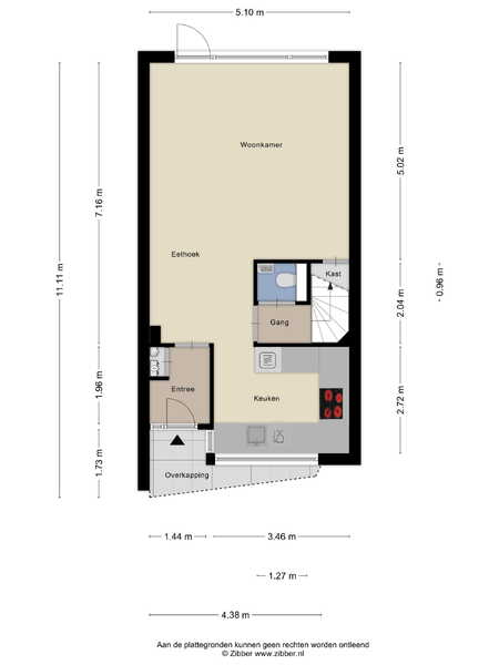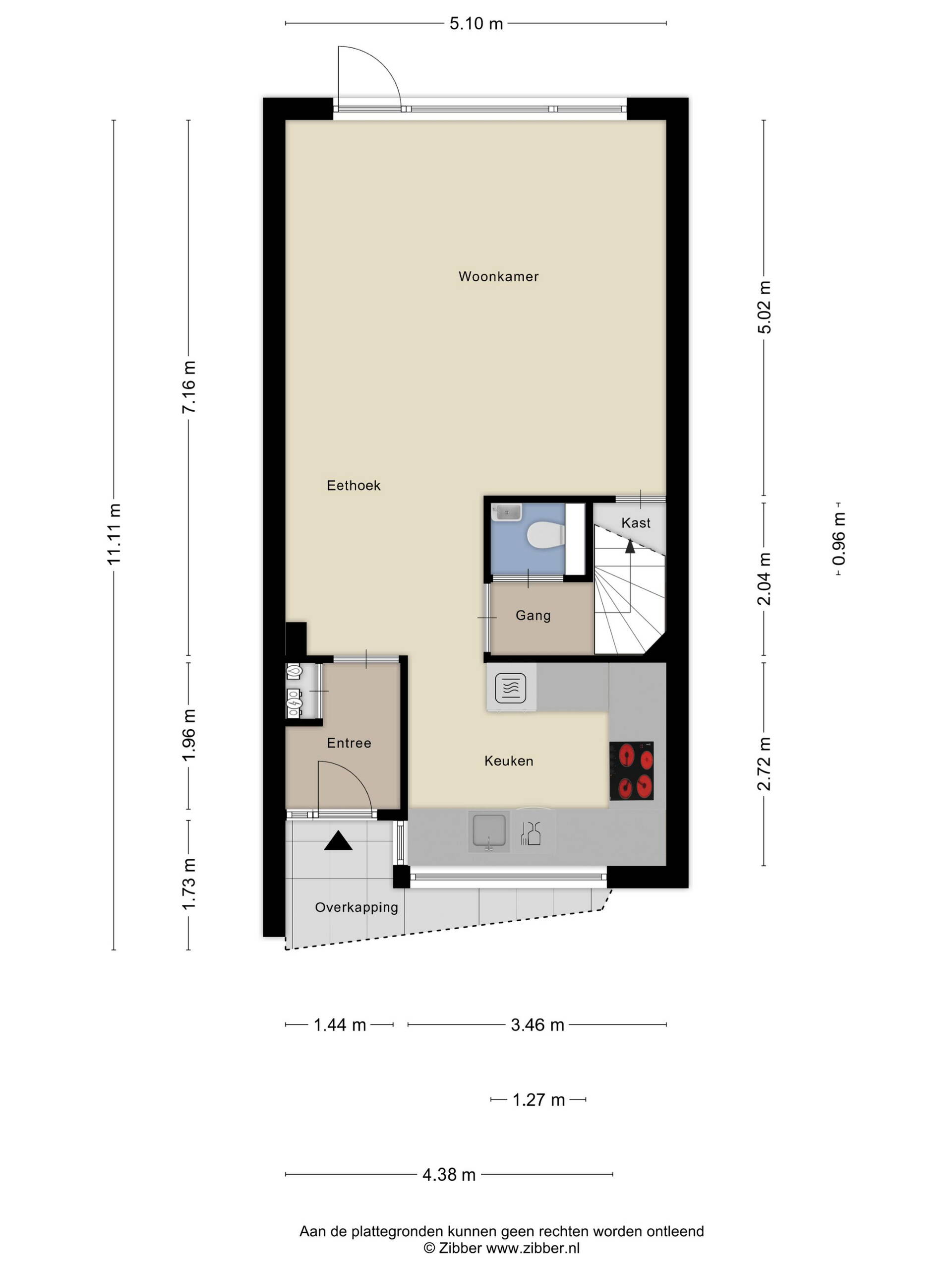 Via de woonkamer heeft u toegang tot de binnenhal met trap naar de 1e verdieping en toiletruimte.
