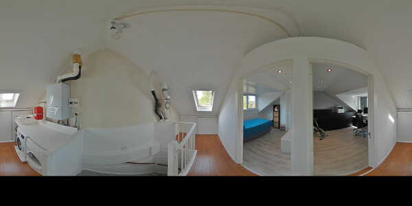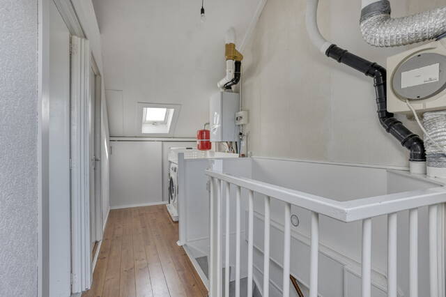 Voorzolder met opstelplaats voor de HR C.V. combiketel (Vaillant 2012), mechanische ventilatie, wasmachine- en drogeraansluiting, omvormer voor de zonnepanelen en bergruimte achter het knieschot. Verder is de voorzolder voorzien van twee dakramen met hor.