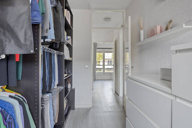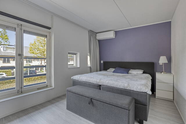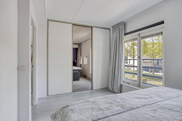 Slaapkamer 1 (ca. 15 m2) is gelegen aan de voorzijde van de woning en beschikt over een gezellig Frans balkon en airconditioning dat de kamer verwarmt en koelt. Verder is deze slaapkamer voorzien van een schuifkastenwand met 3 deuren.