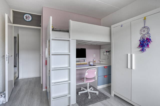 Slaapkamer 3 (ca. 7 m2) is gelegen aan de achterzijde van de woning en is voorzien van een vaste kast.