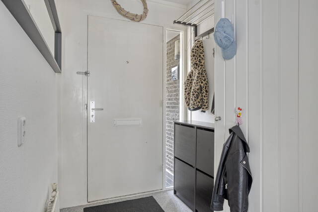 Gezellige voortuin voorzien van sierbestrating, sierbeplanting en een buitenkraan. Handige overdekte entree, hal met meterkast en garderobe. Toegang tot de living.