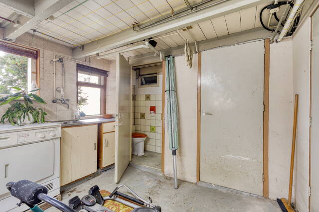 Het souterrain biedt veel praktische bergruimte en is ideaal voor het opbergen van al uw spullen, inclusief tuin- en klusgereedschap. U vindt hier een pantry met aansluitingen voor de wasapparatuur, een vaste kast met gedeeltelijk de meterkast, een technische ruimte met opstelling voor de Remeha cv-ketel uit 2007 en een toiletruimte met toilet en wasbak. Vanuit het souterrain is tevens directe toegang tot de achtertuin. Het souterrain vormt zo de perfecte plek om al het benodigde gereedschap en materiaal netjes op te bergen.