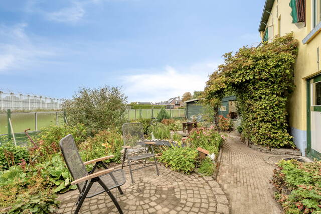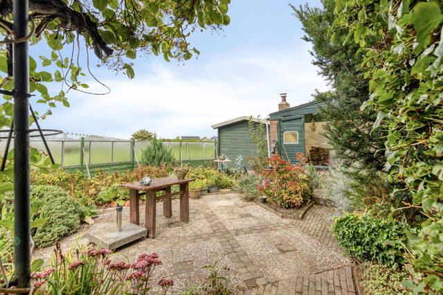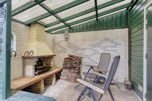 De achtertuin is heerlijk gelegen op het westen en biedt voldoende grond om een eigen moestuin aan te leggen, waar je groenten, kruiden, fruitbomen en andere planten kunt laten groeien. Dankzij de kas kunt u ook in de winter genieten van verse groenten en kruiden, zodat uw tuin het hele jaar door productief blijft. Verder biedt de achtertuin een overkapping met een gezellige haard, twee achteroms, een vaste kast voor de tuingereedschappen en tuinspullen, een vijver en verschillende plekjes om te zitten en van de zon te genieten. Onder de garage staat nog een extra ruime berging.