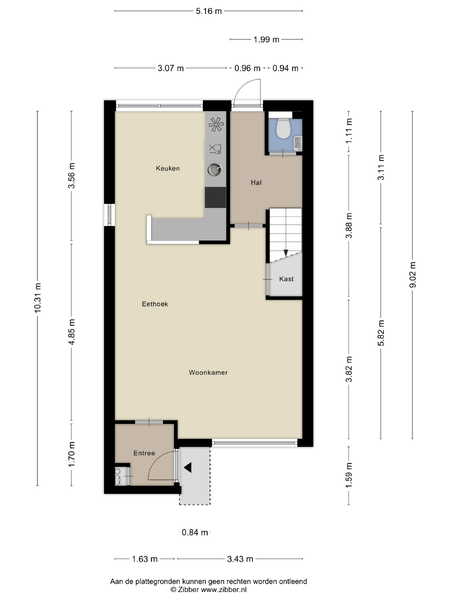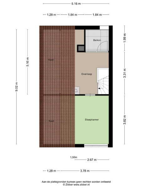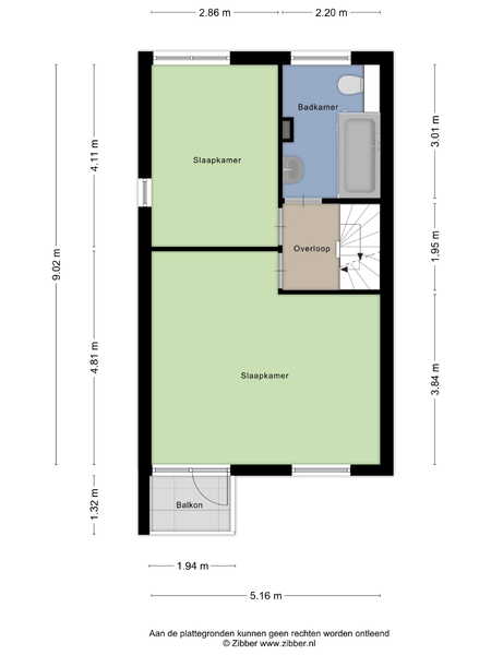 Balkon (ca. 3 m2) is gelegen op het noordoosten.