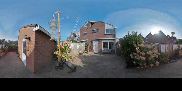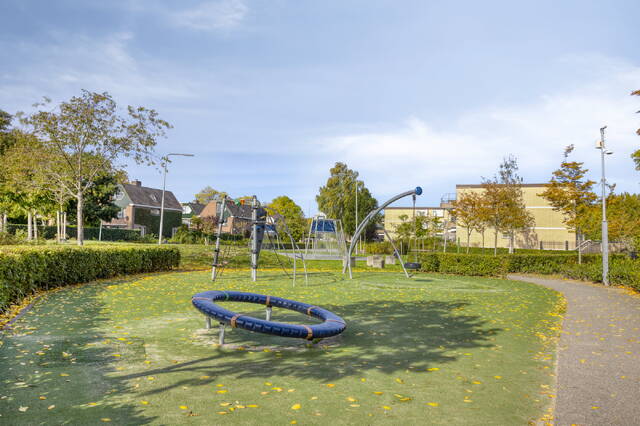 De woning ligt aan een autovrij plein, direct aan de voorkant van het huis. Op dit plein bevinden zich speeltoestellen, waardoor kinderen veilig en zorgeloos buiten kunnen spelen zonder verkeer van auto’s. De voortuin is gelegen op het noordoosten en is vrij aangelegd met sierbeplantingen en bestrating. Verder beschikt de voortuin over een handige buitenkraan.