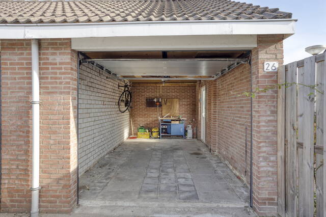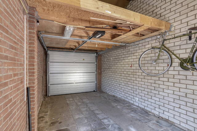- Vrijstaande garage voorzien van elektrische garagedeur en extra bergruimte door een handige vliering;