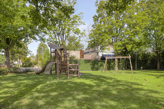 Hoekwoning met garage en zonnige achtertuin in een groene woonomgeving.
