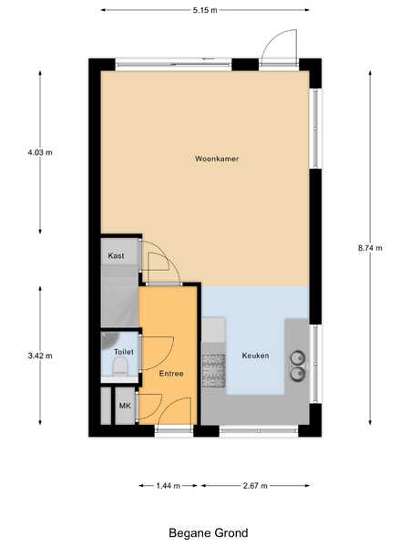 Via de voortuin stap je achter de voordeur binnen in de uitnodigende hal met toegang tot de meterkast en de moderne toiletruimte. Vanuit de hal loop je door naar de royale, tuingerichte woonkamer. Door de hoekligging en de grote raampartijen valt het daglicht hier prachtig naar binnen. Je voelt direct de rust en de ruimte. De begane grond is voorzien van comfortabele vloerverwarming. Aan de tuinzijde is voldoende ruimte voor een gezellige zithoek.
