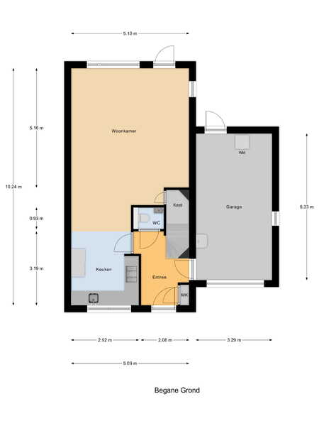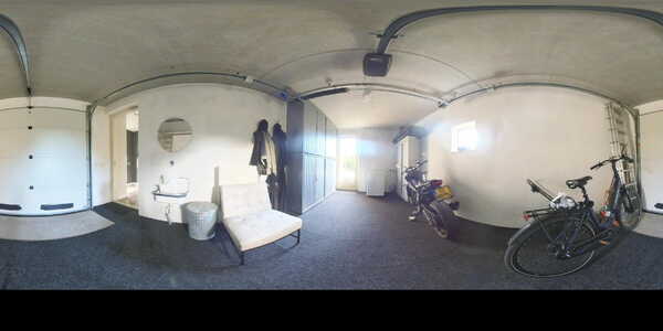 Vanuit de hal heeft u toegang tot de garage met een elektrische garagedeur en een uitstortgootsteen. Middels een aparte deur is de achtertuin te bereiken.