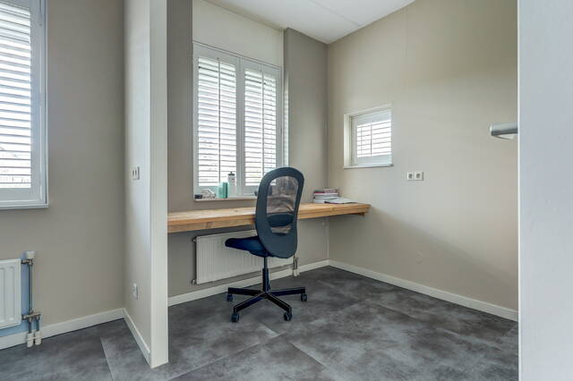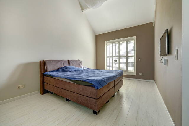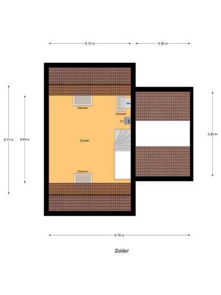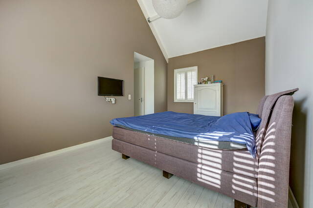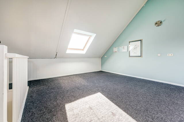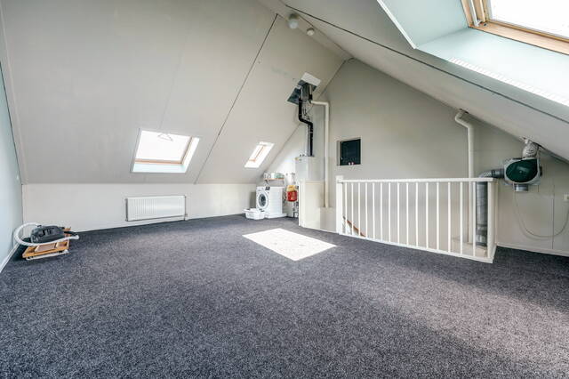 Via een vaste trap bereikt u de ruime zolderverdieping. Deze multifunctionele ruimte (ca. 27 m²) kan eenvoudig worden ingericht als vierde slaapkamer, werkkamer of hobbyruimte. De zolder heeft 3 Velux dakramen die zorgen voor veel licht en beschikt over een aparte opstelplaats voor de CV-installatie en de wasmachine en de droger. Er is veel extra bergruimte achter de knieschotten.