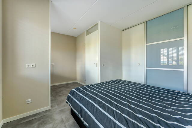 De eerste verdieping telt drie ruime slaapkamers en een moderne badkamer. De hoofdslaapkamer (ca. 16 m²) aan de achterzijde beschikt over een aangrenzende inloopkast met schuifdeuren, ideaal voor extra opbergruimte. Deze slaapkamer is eventueel op te splitsen in 2 kamers. De tweede slaapkamer (ca. 19 m²) aan de voorzijde biedt toegang tot het Franse balkon, waar 's ochtends heerlijk het zonnetje naar binnen schijnt door de openslaande deuren. Deze slaapkamer is voorzien van vloerverwarming. De derde slaapkamer (ca. 8 m²) is eveneens ruim en geschikt als kinder-, logeer- of werkkamer.