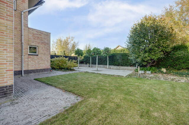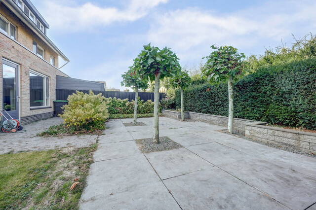 De verzorgde achtertuin is een heerlijke plek om buiten te zijn. De combinatie van gras, bestrating en groen zorgt voor een prettige balans tussen onderhoudsvriendelijkheid en sfeer. Dankzij de volgroeide hagen geniet u hier van veel privacy. De tuin biedt o.a. ruimte voor een loungehoek, eettafel en speelplek voor kinderen. Via de tuin is er ook toegang tot de garage en de zijkant van de woning.