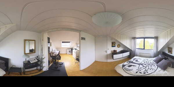 De tweede verdieping is bereikbaar via een vaste trap en biedt een ruime slaapkamer