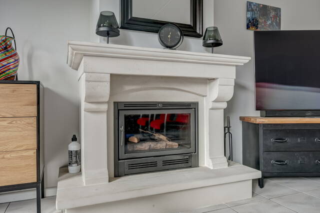 De gehele begane grond is afgewerkt met een plavuizenvloer met vloerverwarming.