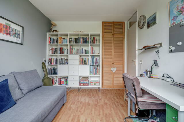 (ca. 20 m²) met dakkapel aan de voorzijde, wat zorgt voor extra licht en ruimte. Hier is eenvoudig een vijfde slaapkamer te realiseren. Daarnaast vind je hier de cv-installatie, aansluitingen voor wasmachine en droger, een klein keukenblokje met warm/koud stromend water en extra bergruimte. De aanwezige dakramen zorgen voor een prettige lichtinval. De tweede verdieping is afgewerkt met een parketvloer.